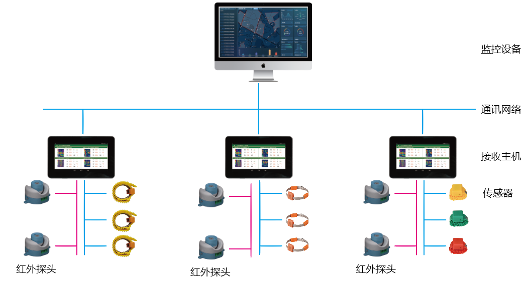無線溫度監(jiān)測系統(tǒng)具有極高的可靠性和安全性,可直接安裝到每臺高壓開關(guān)、母線接頭、戶外刀閘、變壓器等容易產(chǎn)生高溫的電氣接點(diǎn)處。系統(tǒng)配備標(biāo)準(zhǔn)通訊接口,可聯(lián)網(wǎng)運(yùn)行。通過上位機(jī)軟件,可記錄高壓設(shè)備實(shí)時運(yùn)行溫度的數(shù)據(jù)。為高壓設(shè)備的維修提供歷史數(shù)據(jù),實(shí)現(xiàn)了高壓設(shè)備熱故障預(yù)知維護(hù)。